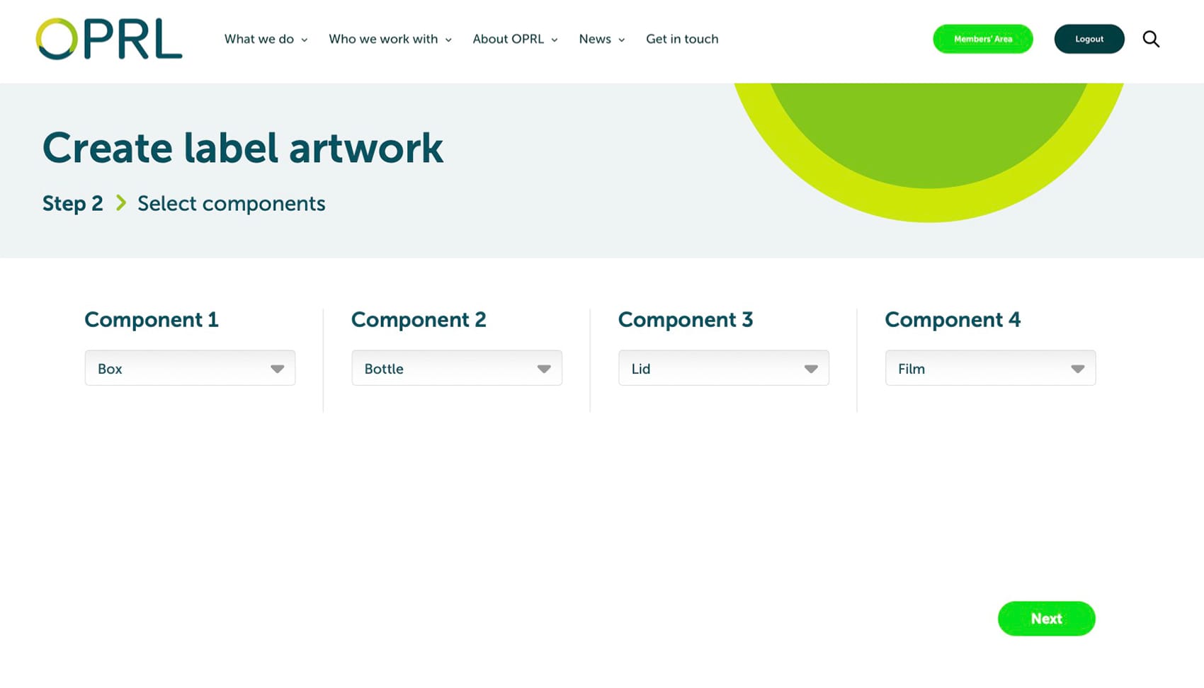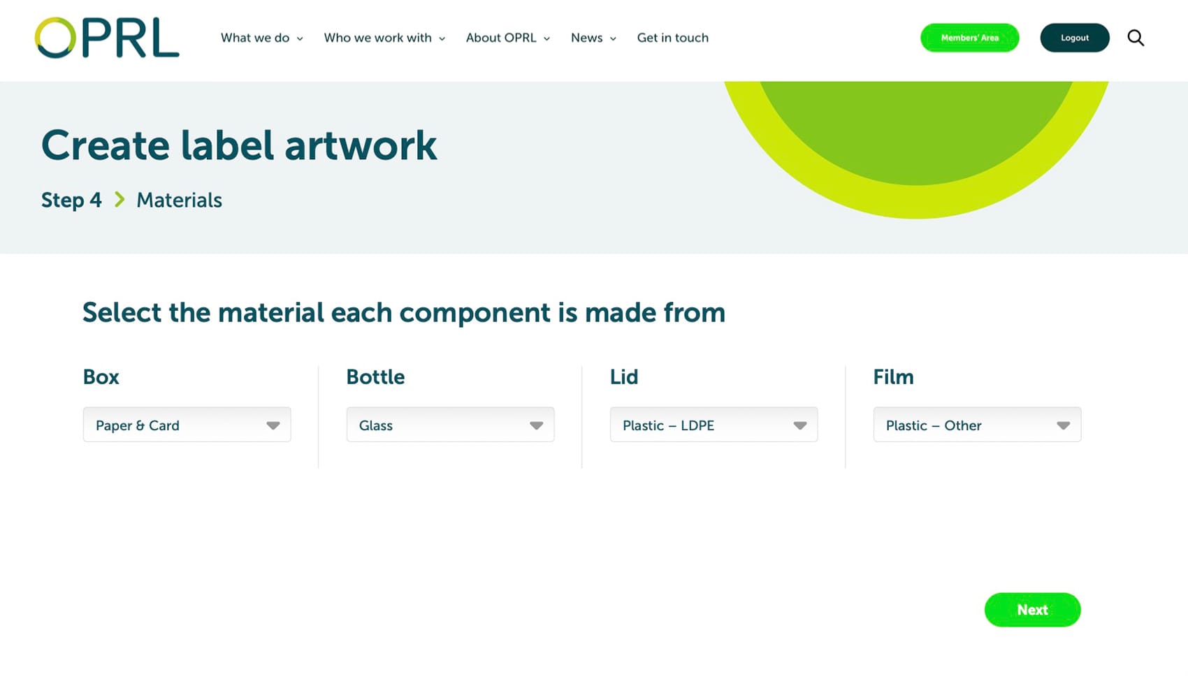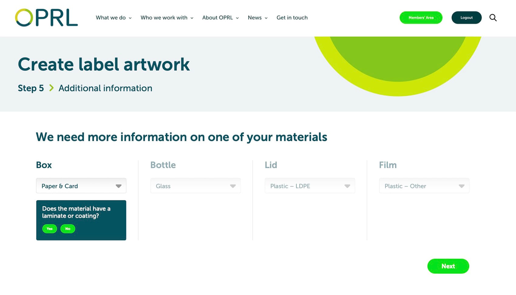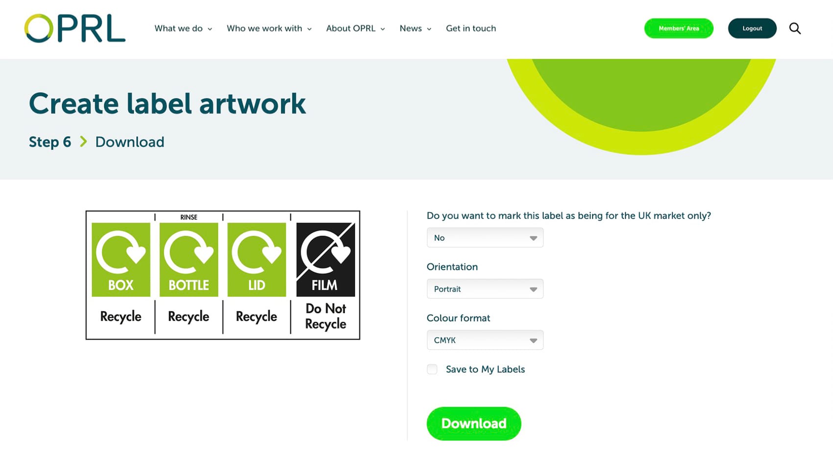 The OPRL label tool enables members to dynamically create recycling labels. Guiding users through a series of questions, it ensures the accurate generation of the appropriate label for their packaging. Once completed, users can download the print-ready label in PDF format
